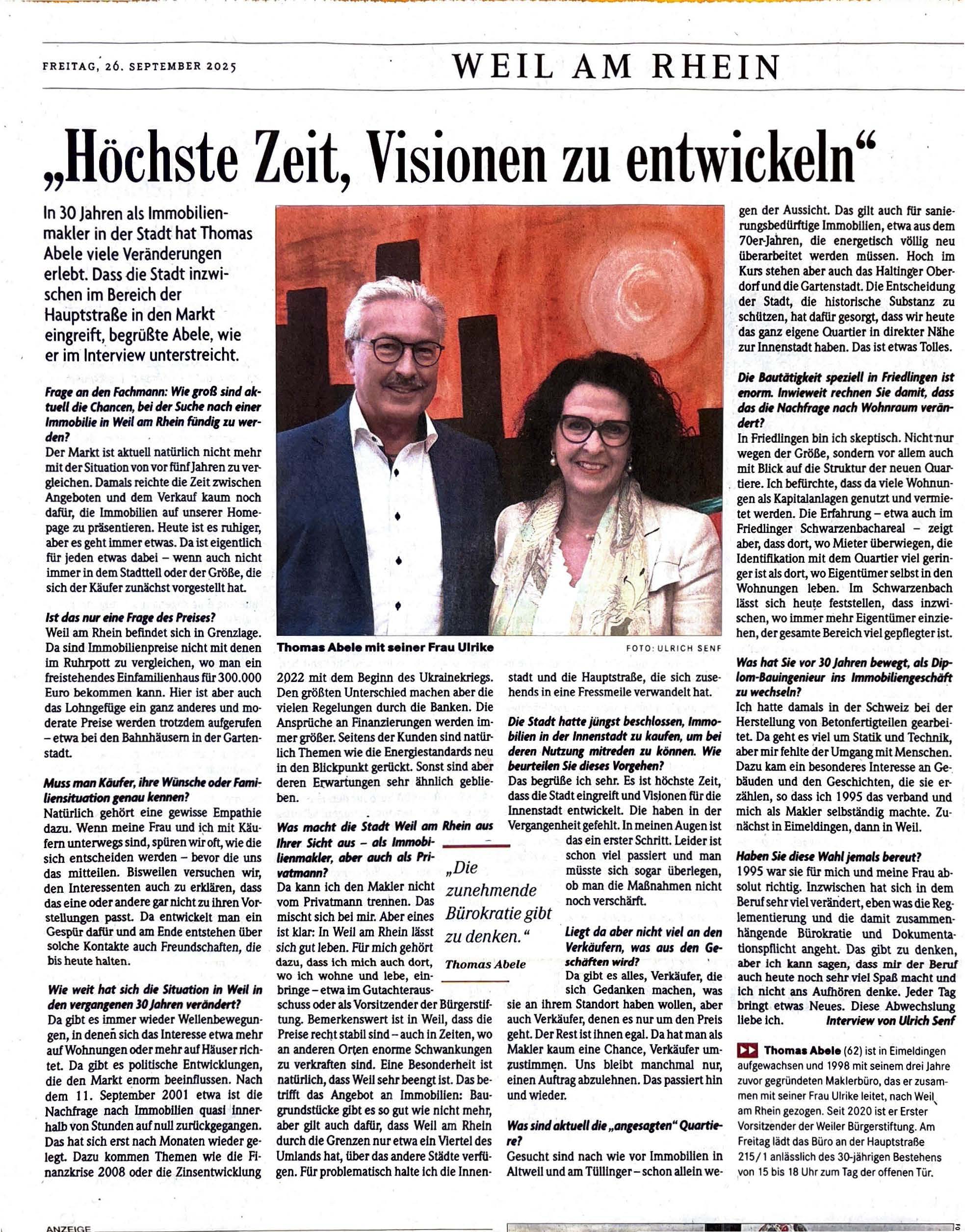 Herr Senf von der Badischen Zeitung interviewte Thomas und Ulrike Abele zum 30-jährigen Firmenjubiläum.